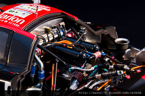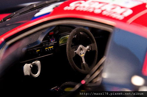 唯一能夠讓我挑剔的地方也就是內裝部分,雖然賽車內本來內裝就比較貧乏,但其實可以使用獨立零件來讓車室更為豐富而不單調,這點在很多18的車模品牌中都有這些困擾,當然一步到位之後能夠改進的地方就更少了且價格也會三級跳(雖然A很大這牌子價錢早就五級跳了吧)