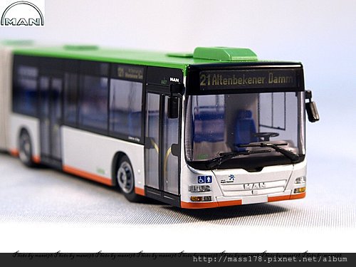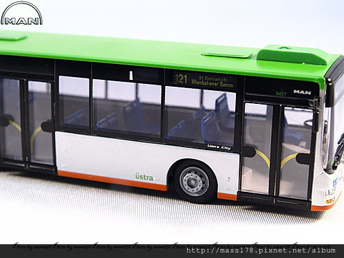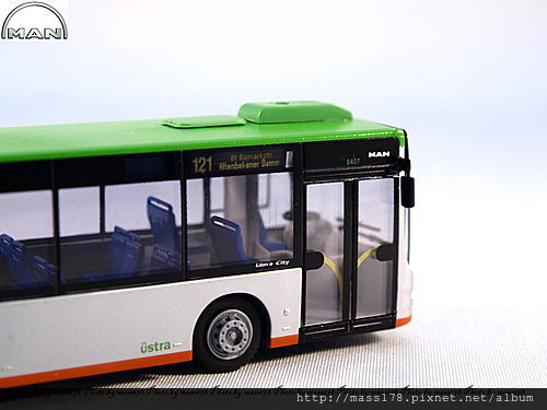 我上網查過了這台MAN LION'S CITY G除了這個塗裝以外還有其他許多彩繪圖裝.會選擇這台素色的原因是她屬於Hannover的公車,而女友所在地方就在那附近.