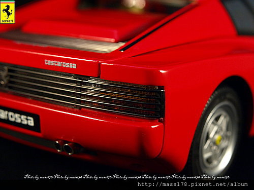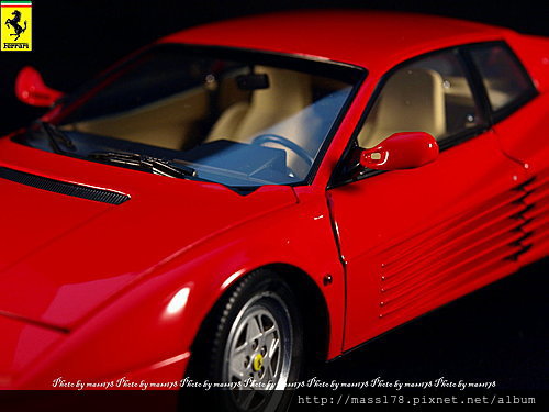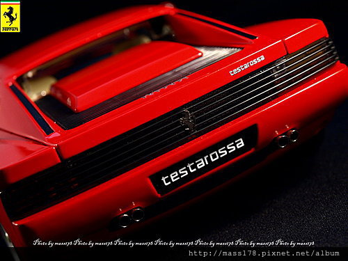 紅頭 "Testarossa"承繼著250 TR名字的Ferrari超跑,由名設計師Pinifarina一手設計而成的絕世名作。接近兩米嚇人的車寬以及橫柵式進氣口的Testarossa就是它的象徵,這兩項特點也陸續的傳承到Ferrari之後的車系之中。Testarossa是512BBi的後繼車,扛下512車系的重任,說他是512BBi的後繼車真的看不出有甚麼共通點,反到後來的512M、512TR都有Testarossa的身影在。小時候第一次接觸認識到Ferrari的跑車就是Testarossa,那美麗的身影常常是我幻想的對象。