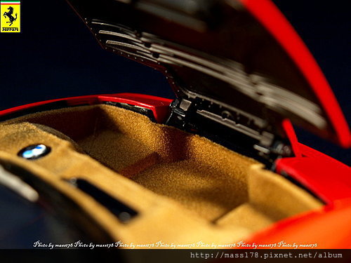 行李箱鋪棉,前廂蓋的軸承機構。對於車模的開啟處我蠻在意的,尤其是狗腿部分,有莫名的厭惡感(相信有人一定跟我一樣龜毛