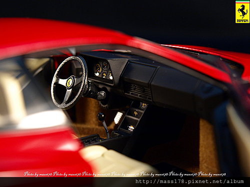 而Testarossa就是贏在品質輸在品管的最佳例子,內裝用料、外觀比例、蝕刻片都極具水準,完全秉持著kyosho Ferrari系列高價位高品質的傳統。