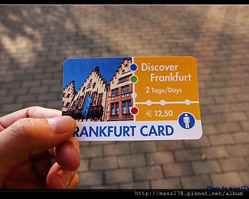 首先在德國的城市要玩個一、兩天最推薦當地的歡迎卡(welcome card),像法蘭克福卡兩天只要12.5EUR,可免費任意搭乘市區的任何一種大眾交通工具,參觀博物館也有五折優惠,還有許多好康在裡面。