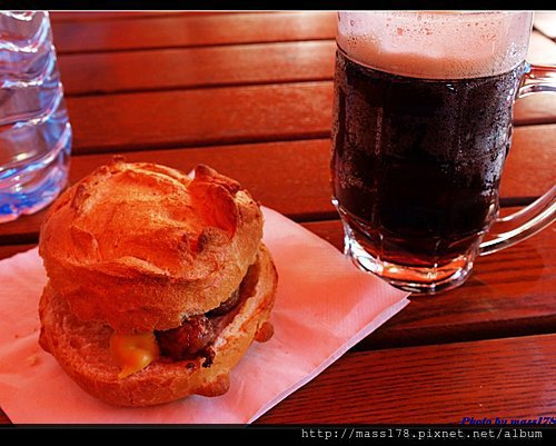 今日午餐:黑啤酒加麵包夾德國香腸。