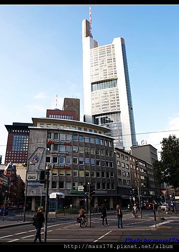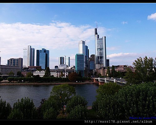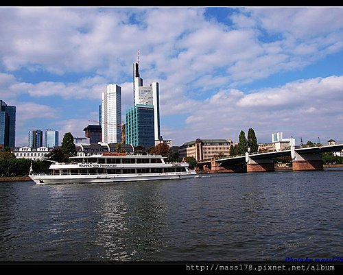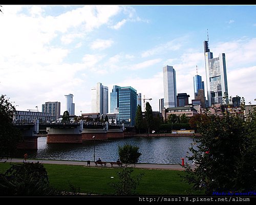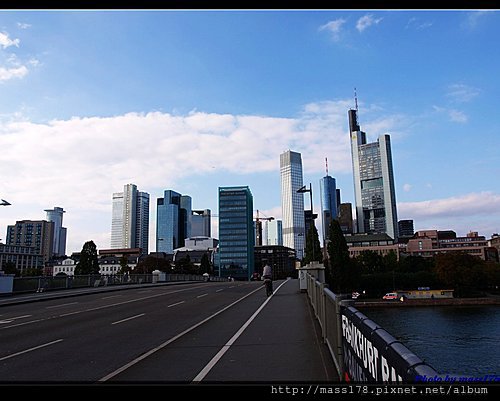 法蘭克福擁有德國第一大的機場,也是歐洲的航運轉運中心之一,因此每隔五到十分鐘就有一架飛機起降,也是德國漢莎航空的根據地。又因為它是德國的金融中心,城市有梅因河貫穿其中,因此又有梅因哈頓(Mainhattan)之稱,主要與華爾街所在地曼哈頓(Manhattan)相呼應。也因為是金融中心,因此是德國少數擁有摩天大樓天際線的城市,歐洲央行總行所在地就在法蘭克福。法蘭克福只是德國第五大城,人口數僅僅只有六十幾萬人,才高雄市的一半而已,但重要性卻居歐洲之最。歐洲的城市都沒有亞洲這麼擁擠,因此也沒有像台北市一樣那麼的有緊張感。許多公司都只有上半天班,就算整天班也只到五、六點,七點以後商店幾乎都開始關門。