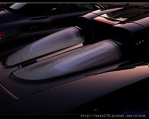 網狀的引擎蓋,非常的優雅。拿到車模時,也是東摸西摸的玩著這個引擎蓋。我的疑問又來了,下雨天引擎不怕雨水嗎