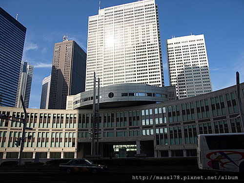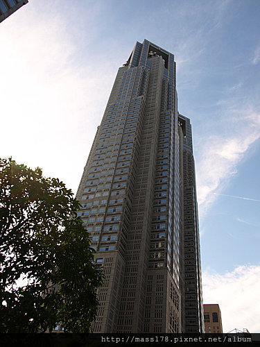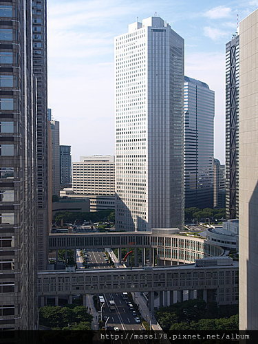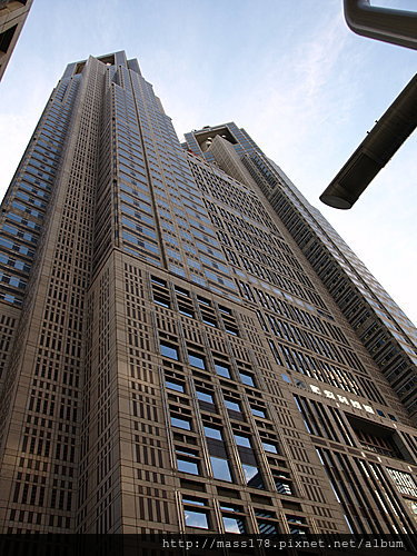 東京新都廳的造型很特別,由兩棟本廳舍組成。在第一本廳舍前面有個廣場,是由環型的建築圍起來而成的,那環型的建築似乎是它們的都議會。整個新都廳是建在第二層公路上,下面其實還有一層原本的公路。